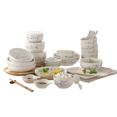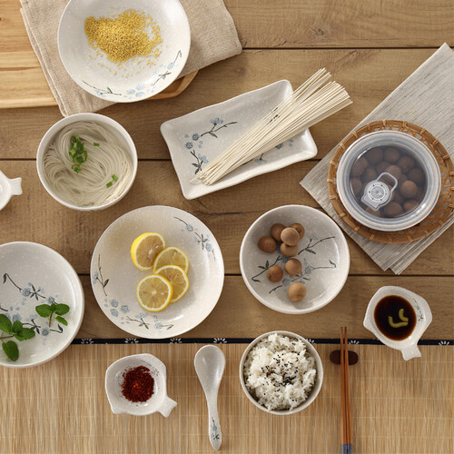 这款餐具套装具有光润亮泽的釉面,让人一见倾心;配备多种形状的盘碟,满足各类菜品装取需求。