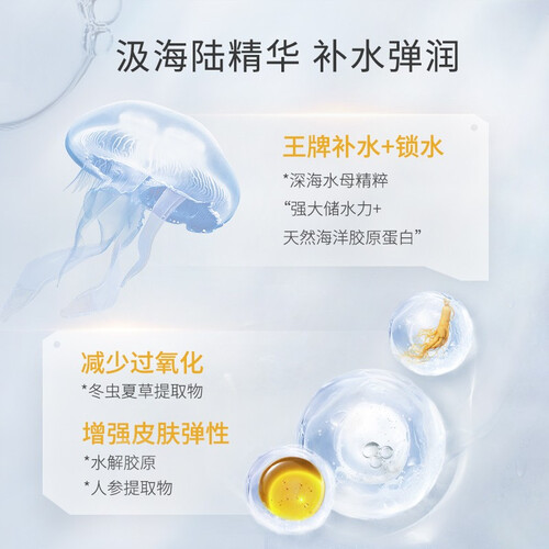 这款面膜的主要成分是一种从深海水母上,提取的天然海洋胶原蛋白,保湿滋养肌肤并强化肌肤弹力效果舒缓皮肤。