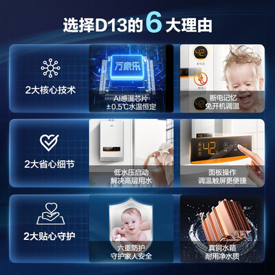 支持宽频调温,四季水温都合适,并拥有智能断电记忆,沐浴时意外断电,开机时会自动恢复上次沐浴状态,不用手动调温。