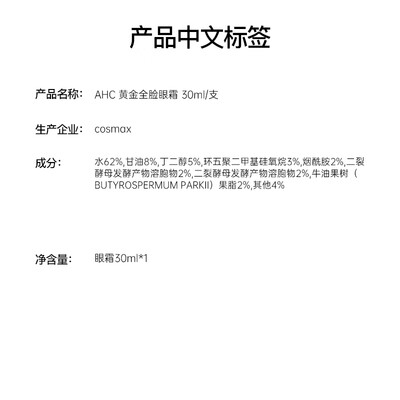 内部富含黄金能量珠,营养成分更高,具有全面滋养的效果。添加烟酰胺成分,具有淡化暗沉的效果,提亮肌肤,保持眼周的紧致感。