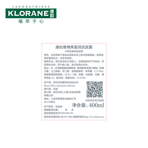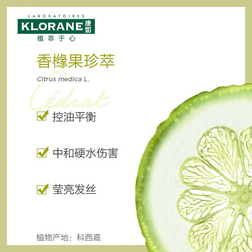 含有香橼果提取物,有效修复硬水钙化带来的发丝损伤,强根固发,深层洁净头皮脏物,使用后顺滑轻盈,更有光泽。