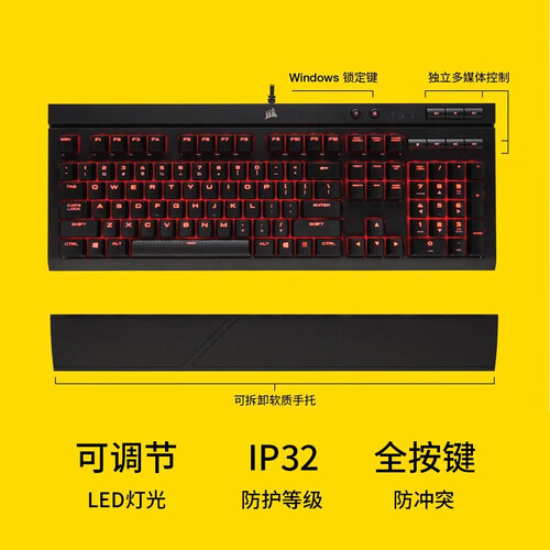 配有红色可调背光设计,自由设置键盘亮度,满足个性化需求,酷炫十足。采用全键无冲技术,迅速响应按键,输入准确率高,避免误操作。