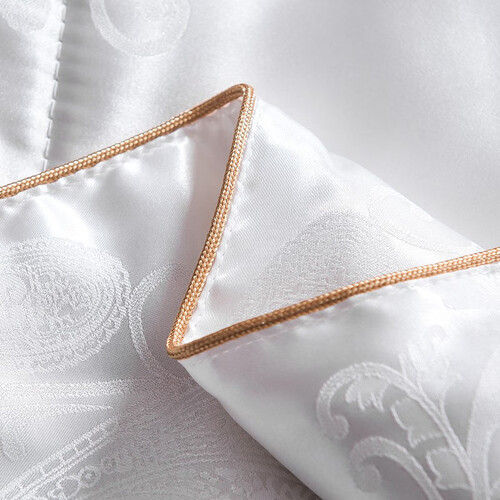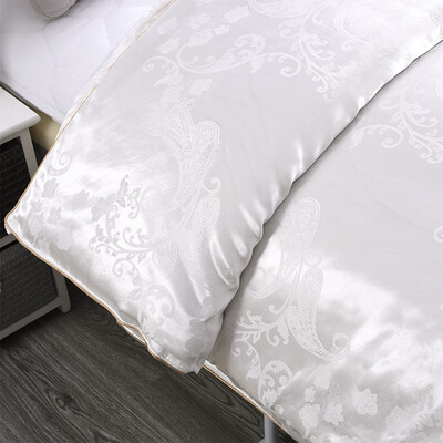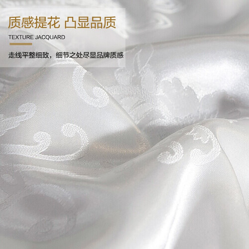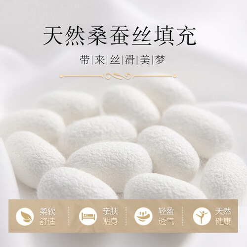 选用桑蚕丝填充,天然材质污染小,使用更健康。丝滑贡缎面料触感细腻平滑,配合精美绣花,提升品位显大气。