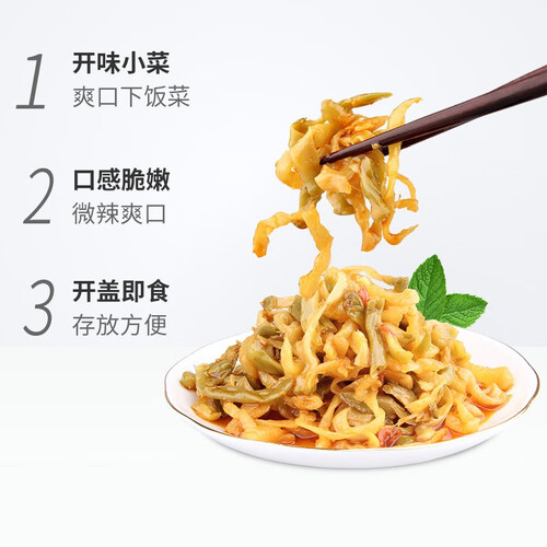 选取新鲜芥菜、萝卜、豇豆,加以辣椒和香辛料腌制而成,口感爽脆,鲜香麻辣,引人垂涎。大瓶装更实惠,适合全家老小食用。