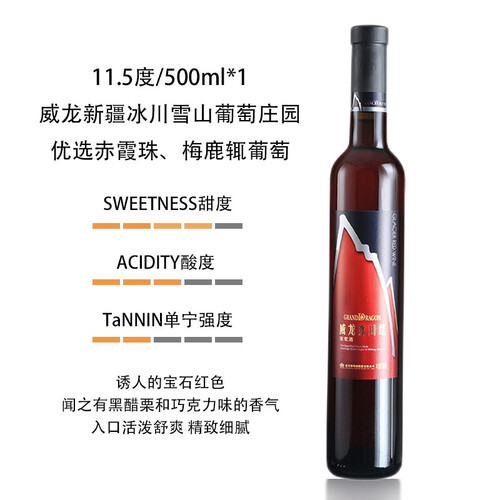 在零度环境下采摘结冰的葡萄,快速压榨后以低温发酵技术来酿造,提升酒体中的含糖度。这款酒味道清凉,甜度适中,符合国人口味。