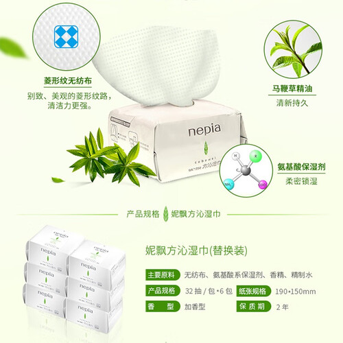 采用大方简约的包装,展现产品的本真之美,没有花里胡哨的装饰。同时表面采用菱形纹无纺布,清洁效果更强。