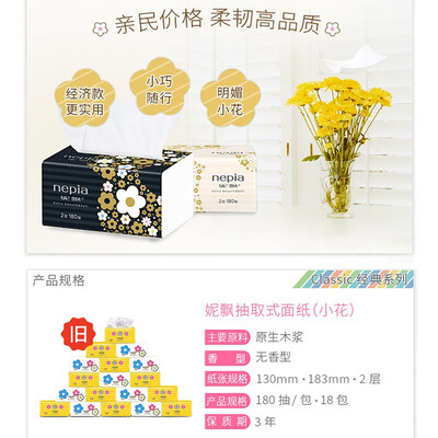 具有柔软舒适的肤感,触感更为顺滑,而且不易于拉断。加厚的纸巾设计,韧性较为出色,吸水性能较强,瞬间干爽。