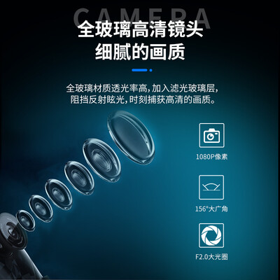 采用前后镜头双录设计,完整记录行车情况,告别单一记录方式。拥有156度大广角视野,可视范围更广,再无拍摄盲区出现。