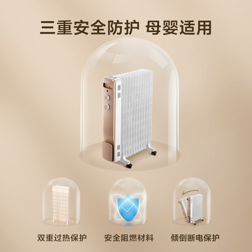 采用拓宽油路设计,导热油流动和导热速度更快,避免久等。采用旋钮调整温度,保持温度稳定,告别忽冷忽热的不适体验。