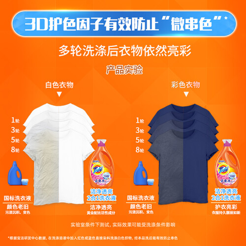 拥有出色洁净力,能深层洗去污渍,并有效防止污渍回渗;协同3D护色因子,起到护色防串色的效果,让吃货党自信赴约。