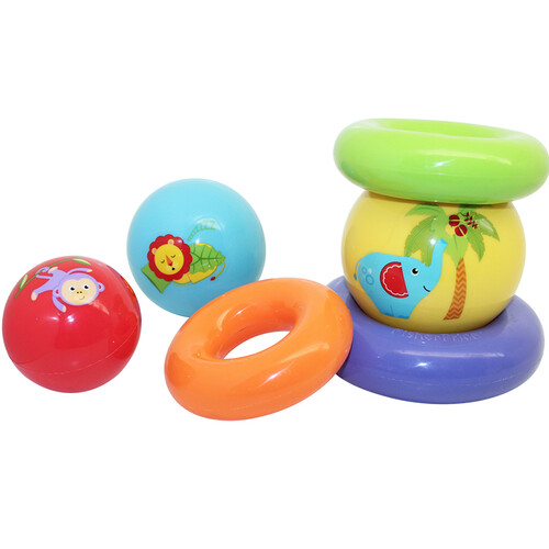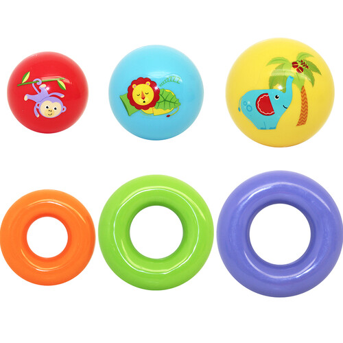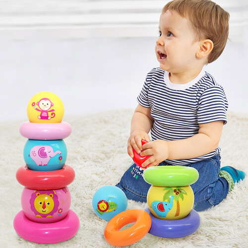 圆球和圆环组合堆叠玩具,开发宝宝智力,丰富宝宝的形象思维。外表刻画了形象的动物图案,帮助宝宝认识动物。