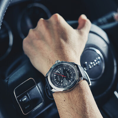 大表盘设计融合汽车元素,通过中间半透明区域,增强盘面层次感,富有视觉冲击力。人工合成蓝宝石镜面,透光性好。