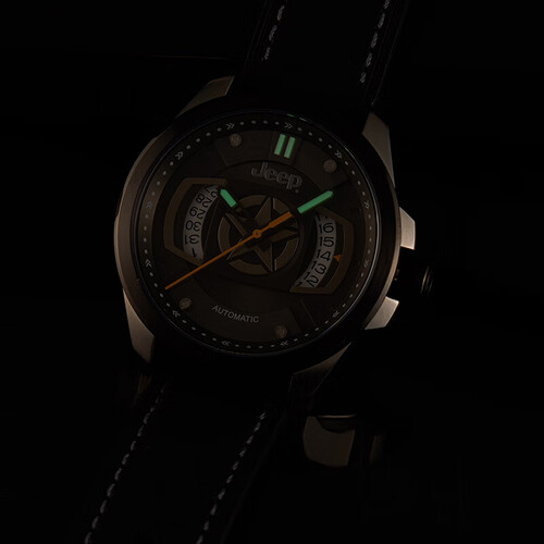 采用大切诺基仪表盘面,结合英雄五星标志,磨砂颗粒感质地,佩戴更显精致大气。夜光指针设计,夜晚也能清晰读取时间。