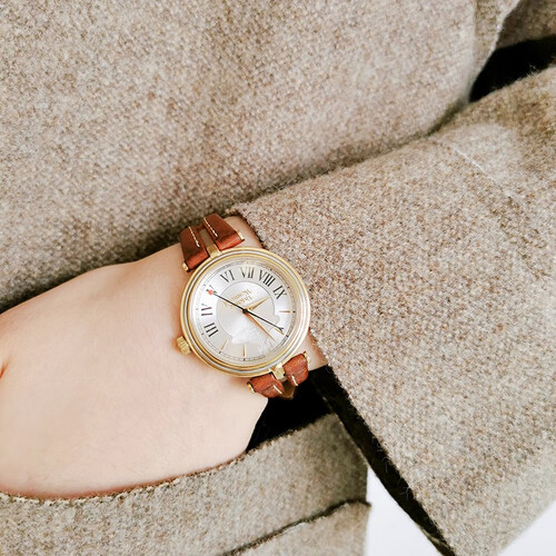 罗马数字的刻度,让复古的意味更加深邃和迷人。12点钟位置的品牌LOGO点缀,散发着轻奢雅致的韵味和品牌魅力。