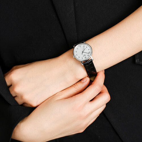 圆形表盘设计,线条简约流畅,带着一丝温婉之感。阿拉伯数字时标,耐看不过时,日常读时更轻松。