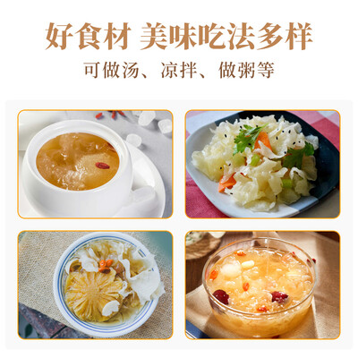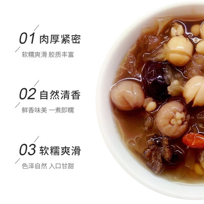 微黄的色泽,新鲜的质感,让这款银耳的品质趋向天然,更适合女生调理身体食用。它的质地十分软糯,口感绵密,入口爽滑。