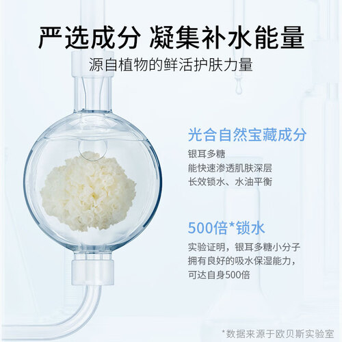 蕴含银耳透明质酸成分,为肌肤深层补水保湿,打造水盈清透的健康肌肤。天蓝色的外观,温和舒适,让人看了赏心悦目。