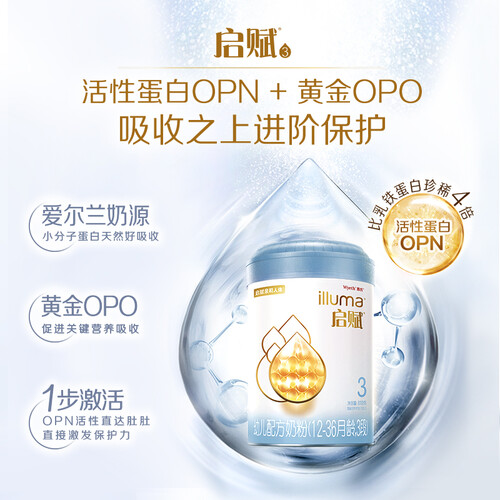 源自爱尔兰原装进口,添加亲和人体的活性营养gsMO成分,让宝宝更好吸收。专为12-36月宝宝设计,提升抵御力健康成长。