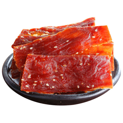 甄选纯后腿肉,沿用近百年靖江工艺配方,搭配优质香辛料,使肉脯入口香醇,肉质鲜香坚韧有嚼劲,肉香扑鼻。