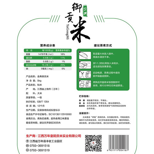 产于中国贡米之乡,根植水土特异,无化肥、农药、除草剂等,一年一季,以纯物理方式进行加工,更采用充氮保鲜,品质安全有保障。