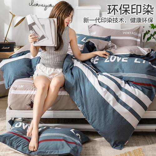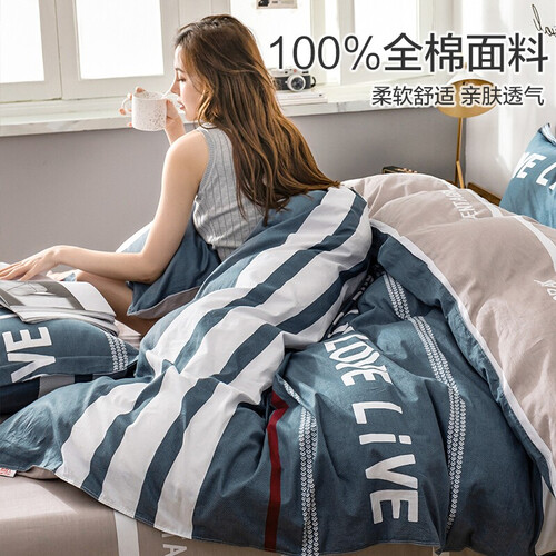 九洲鹿 纯棉斜纹印花三件套