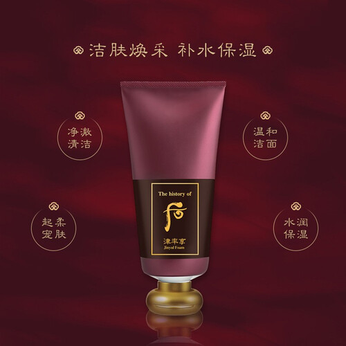 淡黄色质地,蕴含红花肌和加味牡丹精粹,有淡淡中药味,洁面的同时也可以为肌肤补水保湿,锁住水分。