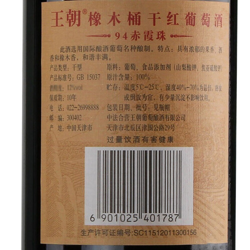 王朝橡木桶窖藏干红葡萄酒