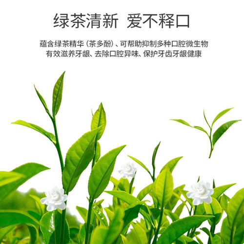 蕴含绿茶精华茶多酚,可以帮助抑制多种口腔细菌,有效护理牙龈,去除口腔中的异味,配合薄荷精华,带来怡人的清凉口感。