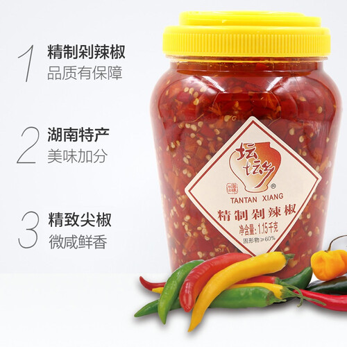 坛坛乡剁椒酱色泽明亮,通透柔和,口感鲜香脆辣,滋味厚重,鲜的正、辣的爽,辣味醇浓,口感细腻,回味悠长。