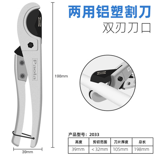 刀柄为铝合金材质,带来舒适的握持感,拿在手里更享受。适用于PVC管,能够自由地切割,长短尽在掌握之中。