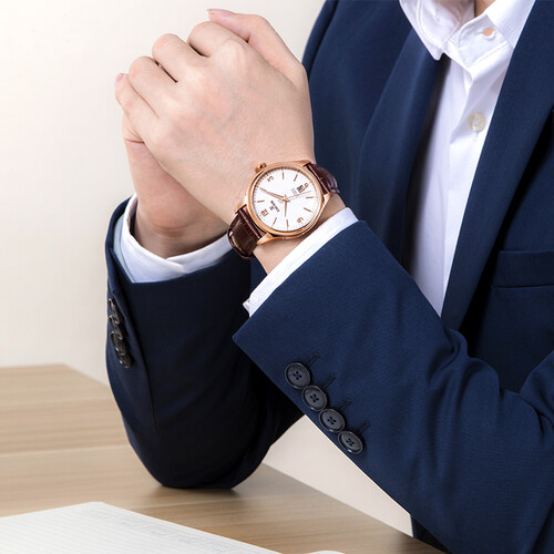 依波的这款商务休闲表,运用简约的大开面设计,摒弃繁杂,以简约之姿凸显商务利落,打造儒雅商务新形象。