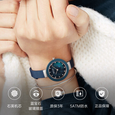 天然母贝表盘和十二颗水晶,寓意是大海与星空交相呼应,米兰表带简单大气充满优雅的魅力,简单的圆形表盘,让日常搭配更简单。