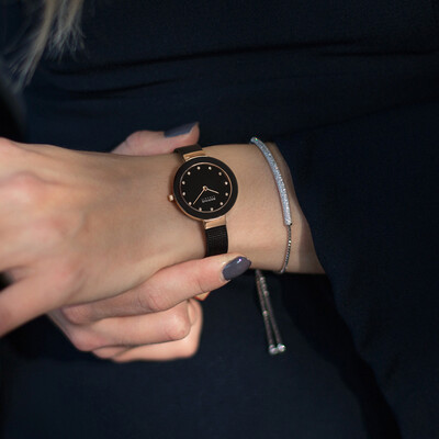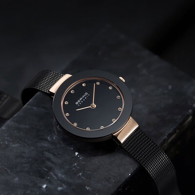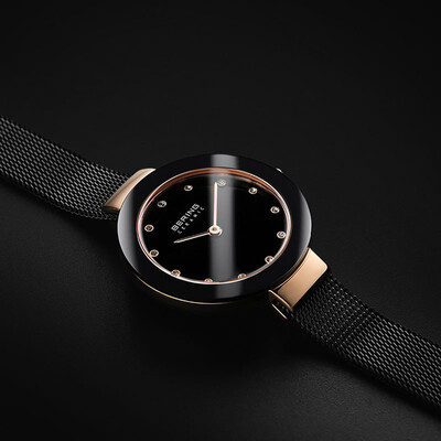 表圈陶瓷材料制成,轻盈顺滑,镀金工艺防止氧化。点缀水晶作为刻度,质感亮丽,散发迷人光芒。