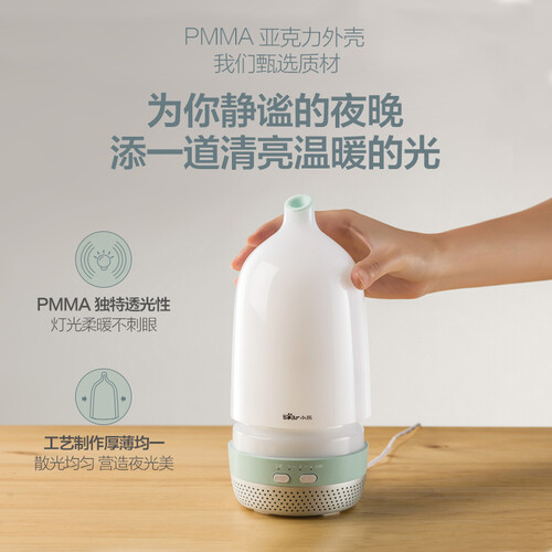 体型小巧轻盈,摆放灵活更省空间。水雾散发快,不易弄湿地板。灯光柔和不刺眼,睡眠质量更佳。选材优质,耐受腐蚀。