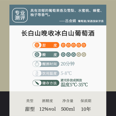 长白山葡萄酒 甜型白葡萄酒