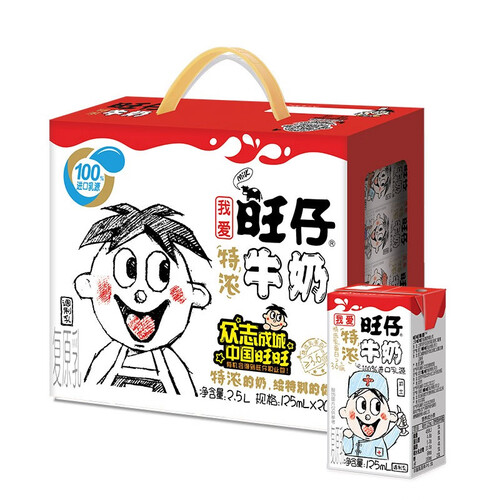 一直深受小孩子喜爱的旺仔特浓牛奶,选用进口乳源,全程无菌生产,并通过深度检验把关,保证其品质更健康安全。