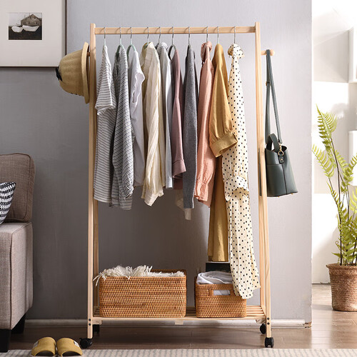 采用稳固三角结构,支撑更稳定,上挂衣服,下放收纳盒或鞋等,置物有序不凌乱。可制动滚轮,方便移动,轻松便捷。