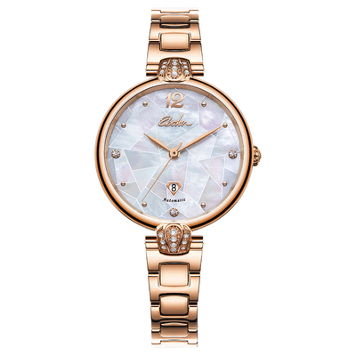 双层的珠白色盘面,具有丰富的立体层次,匠心的镶嵌元素,诠释出了独特的光泽。日历视窗的细节,时间和日期都一目了然。