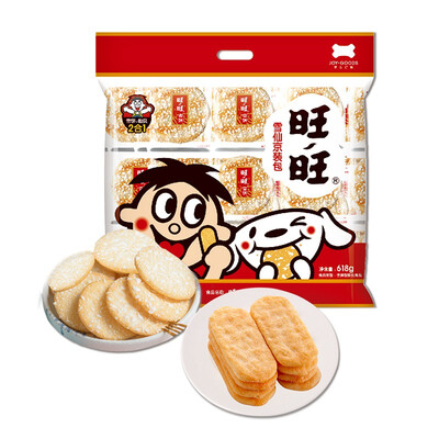 雪饼带有甜味,仙贝带有咸味,香脆爽口,一口就让你爱上,不包含反式脂肪,同时不添加膨松剂,既健康又美味。