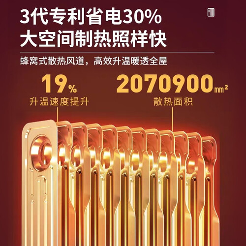 倾倒断电保护,意外碰倒自动断电,确保使用安全,人性化防烫移动手柄,走到哪里暖到哪里。