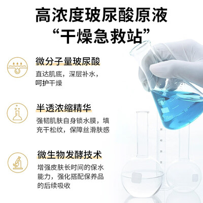 为肌肤补充所需的微分子量玻尿酸,让肌肤由内而外的舒润饱满。有效的抚去暗沉,加强肌肤的耐受性,温和的焕亮肌肤。