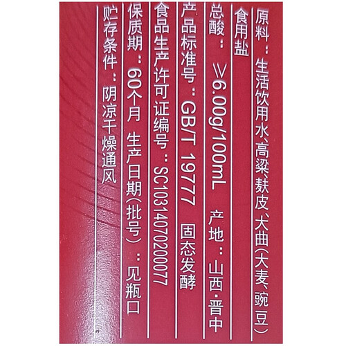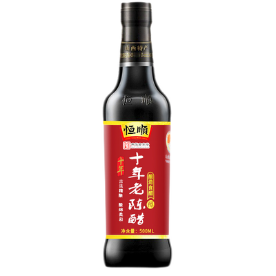 愈存愈醇|秉承传统酿造工艺,精选高粱、麸皮等原料固态分层发酵,并晒足十年,陈醋酸而不涩,香而微甜,色泽浓郁,在烹饪菜肴的时候加入少许,即能得到酸爽滋味。