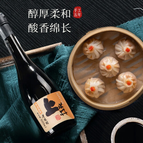 醇厚融合|严格把控原料源头,精选品质优良的高粱、大麦、豌豆、麸皮和水源,以蒸料、发酵、熏醅、淋醋、陈醋五道工艺酿造老味道的山西醋,颜色黝黑有光泽,酸香可口。
