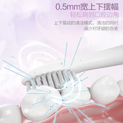尖端纤细刷毛柔和接触牙龈,拒绝出血等现象,健康安全护理口腔。高速声波振动能够应付顽固牙渍,保持牙齿洁白状态。