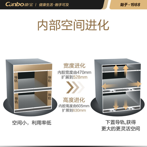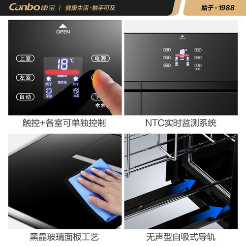 NTC实时监测系统的采用,可智能实时显示消毒状态,一目了然。无声型自吸式导轨,带有阻尼效果,推拉便捷。