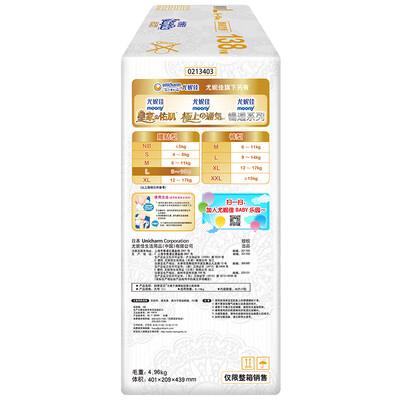 尤妮佳妈咪宝贝纸尿裤带有超长导流层,全面覆盖全吸收,劲吸双通道,快速瞬吸更干爽。更有高压空气冲制表层,轻抚娇嫩小屁股。