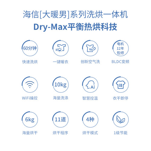 360°循环热风带走以为,使衣物变得蓬松柔软,减少水洗频率、保护衣物不受损伤。11种烘干程序,满足日常洗衣想需求。