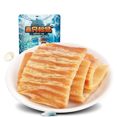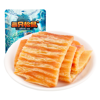 三只松鼠鱿鱼片精心挑选优质鱿鱼,肉质粉嫩,果木恒温烘烤,每个细胞都迸裂出海味的尊严,让人欲罢不能。