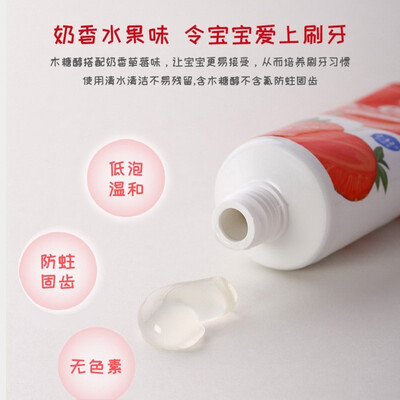 是专为儿童设计的护理牙膏,添加食品级原料,无氟配方而且零色素,能滋养牙龈,预防蛀牙,让宝宝刷牙更放心。