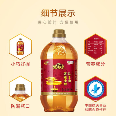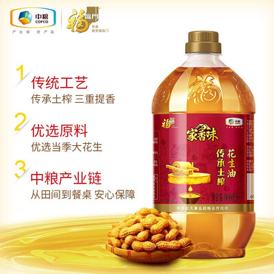 甄选优质山东大花生,饱满新鲜自然清香,优选材料酿造好味道。采用传统土榨工艺,历经三重提香工序,还原自然本真好味道。